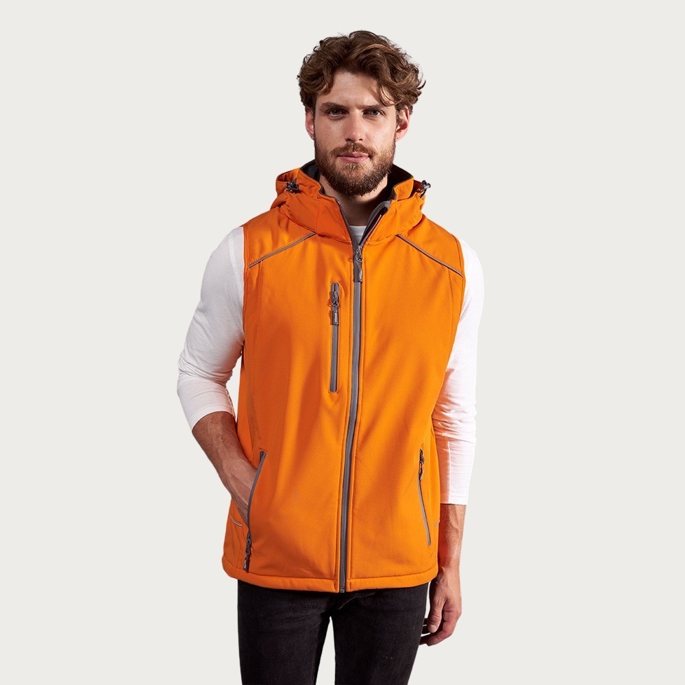 The promodoro softshell vest for men is the latest addition to our softshell collection and is your best choice for any outdoor adventure. If you combine it with our fleece jackets you're prepared for any weather. Our softshell vest comes with a detachable hood and two side pockets with waterproof zips. It is breathable, windproof and waterproof up to 8,000 mm.